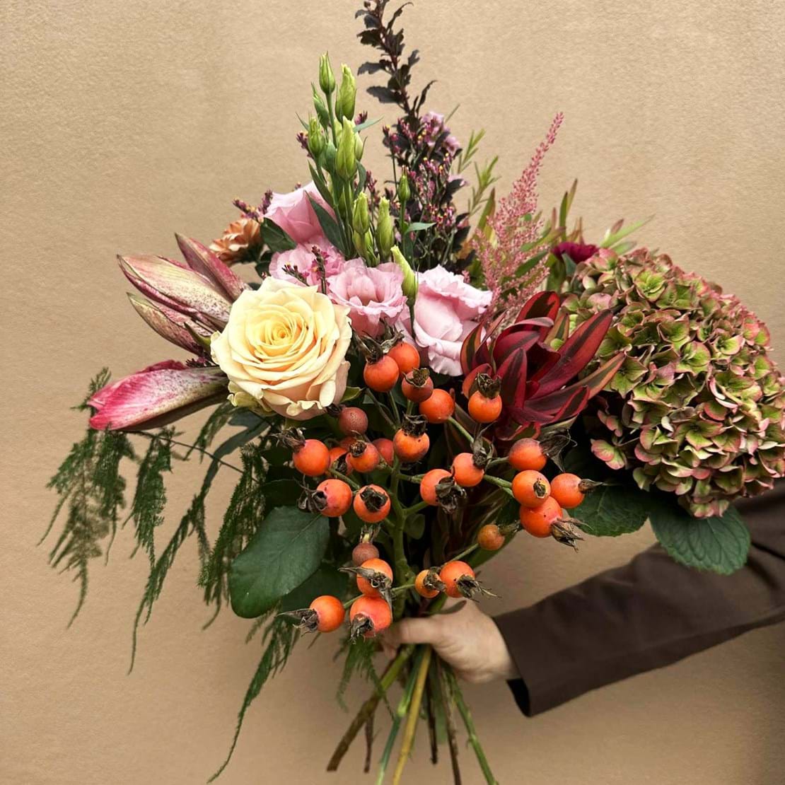 Smukke bundter med løse snitblomster sat sammen, så de kan placeres i en vase eller deles op i mange små. Blomsterne symboliserer altid årstiden og varierer, så man får mest muligt blomst for pengene.